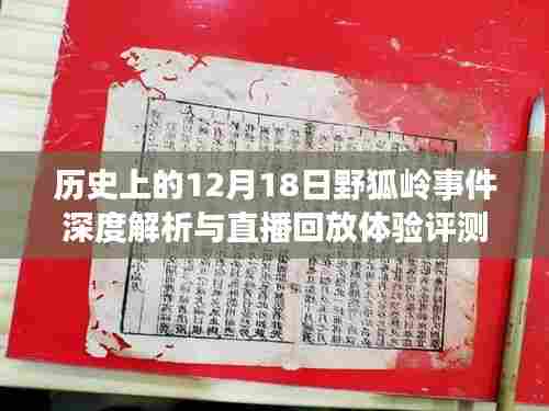随着互联网的普及和直播行业的飞速发展,越来越多的人开始关注历史事件和事件的直播回放,特别是像“历史上的12月18日野狐岭”这样的重大事件,其直播回放更是引起了广大网友的极大兴趣,本文将对这一直播回放的来源、特性、使用体验、与竞品对比、优点和缺点以及目标用户群体进行深入分析。