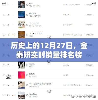 金泰妍的音乐作品在全球范围内取得了骄人的成绩,以下是历史上的12月27日金泰妍的实时销量排名榜: