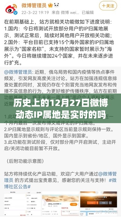 随着互联网的普及和社交媒体的兴起,微博作为一种重要的社交媒体平台,吸引了众多用户分享信息、交流观点,在微博上,动态IP属地显示是实时掌握用户地理位置的一种常见方式,历史上的12月27日微博动态IP属地是否真实反映了用户当时的实际位置呢?本文将围绕这一问题展开探讨。