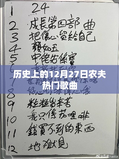 每年的12月27日,都是一个值得纪念的日子,这一天,在历史的长河中,不仅承载着无数重大事件和人物的命运转折,也见证了农夫音乐的繁荣与变迁,本文将带领大家走进这一天,探寻那些与农夫息息相关的热门歌曲。
