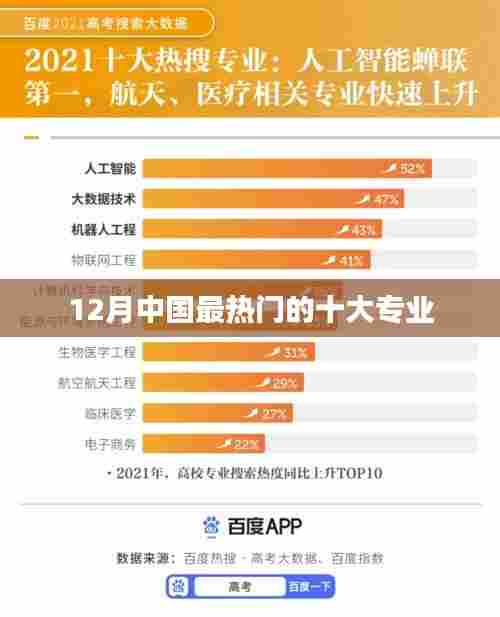 十大专业在12月中国的热门程度较高,这些专业都有着广阔的发展前景和市场需求,每个人的兴趣和职业规划都不同,选择专业时应该结合自己的兴趣和优势进行选择。