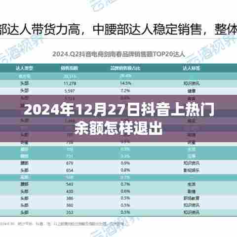 随着互联网的普及和社交媒体的飞速发展,抖音作为一款流行的短视频社交平台,吸引了大量用户的加入,在抖音上,用户可以发布自己的短视频,通过点赞、评论和分享等方式与其他用户互动,为了提升个人或企业账号的曝光度,许多用户会选择购买抖音热门推荐位,而在此过程中,可能会产生一定的余额,本文将介绍在2024年12月27日,如何退出抖音上热门余额。