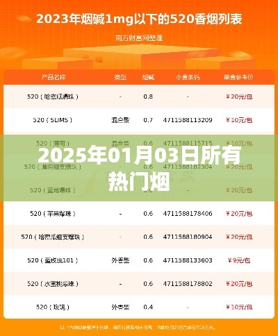 随着时代的发展,烟草行业也在不断演变和创新,2025年01月03日,烟草市场上有许多热门烟草产品,本文将对这一天的热门烟草进行详细介绍。