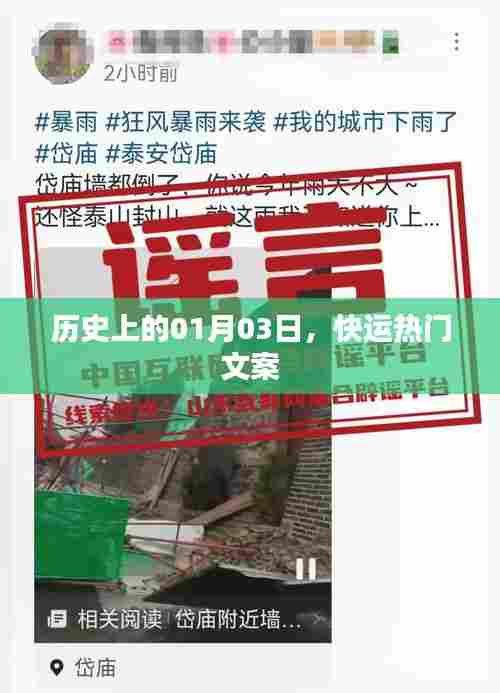 时光荏苒,岁月如梭,历史上的每一个日子都承载着无数故事和事件,本文将带您回顾历史上的01月03日所发生的重要事件,同时结合快运主题,为您呈现一系列热门文案。