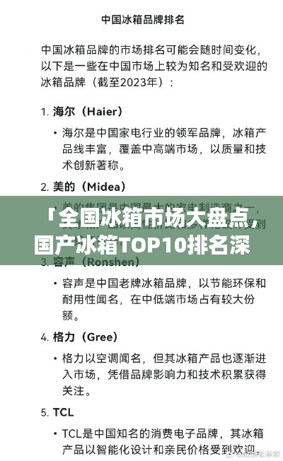 转载请注明来自山高海投内控平台,本文标题:《「全国冰箱市场大盘点,国产冰箱TOP10排名深度解析」》