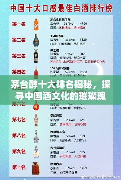 在中国酒文化的博大精深中,茅台醇以其独特的酿造工艺和卓越的口感,成为了无数酒品中的佼佼者,我们将一起探寻茅台醇排名前十名的佳酿,品味这些中国酒文化的瑰宝的独特魅力。