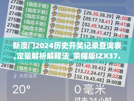 定量解析解释法是一种通过量化数据来解释现象的分析方法,当应用在新澳门2024历史开奖记录查询表时,彩民可以借助统计学的工具进行数据分析,通过对比不同时间段的数据,使用图表工具呈现数字的分布情况,这样的分析方式能够清晰地展示出某些开奖号码的走势,帮助彩民作出更理性的判断。