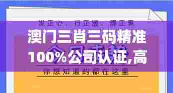 澳门三肖三码精准100%公司认证是指在澳门特区内,相关公司经过严格审核和认证,能够提供精准的三码数据支持。这一认证体制的建立,旨在为企业和用户带来更加透明、可信的数据服务,提高市场的整体运作效率。在快速变化的商业环境中,精准的数据支持显得尤为重要,能够帮助企业做出更为明智的决策。无论是金融行业、博彩业还是其他行业,澳门三肖三码精准100%公司认证都将发挥出重要的作用。