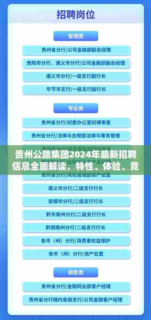 随着交通行业的蓬勃发展,贵州公路集团凭借其卓越的基础设施建设能力和良好的企业信誉,成为了众多求职者关注的焦点,2024年12月6日,贵州公路集团发布了最新招聘信息,为广大求职者提供了广阔的发展空间和职业机遇,本文将对该招聘信息进行全面评测和介绍,帮助求职者深入了解其特性、使用体验,并与竞品进行对比,分析优点和缺点,洞察目标用户群体。